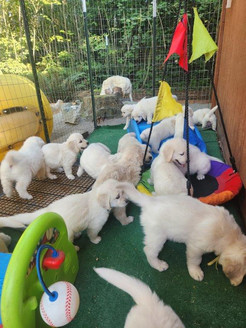 Stroller rides, outside playtime with mommy & daddy and the other dogs, more water introductions, lots of romping and rolling and of course selection visits were had!!!!