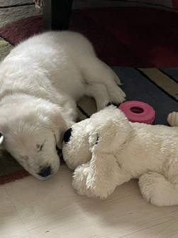 I know all the Reindeer pups are where they are supposed to be but hearing all their updates warms my heart to no end. In this week transitioning from one moment to the next, I am blessed to have such amazing families sending me updates of so much love, so much joy and much success. I am a touch more confident that each and every task that I have committed to doing here for my babies is paying off. By the end of their first week they are all sleeping through the night without a fuss in sight. Potty training has been almost completely smooth sailing for all. Every little moment of goodness that one of these pups has shown of their perfect retriever personality is captured instantly in everyone's heart. I didn't doubt this connection for a second but it always touches my heart to hear it come back as feedback. Here's a few updated pictures of the Reindeer pups in their new homes.