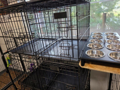 Crates were introduced as well this week 3-5 secs. To begin with so only a positive association was linked.  A few of their meals took place in their crates but the combination of food exposure and crate exposure in one short week lead to not much food being consumed in the crates, but we will get there! The initial excitement of food being introduced has diminished and speed has slowed down. Their focus has improved and they actually keep their snoot in their own bowl now without plowing through, over and into the bowl next to them. The Berry kids start on food tomorrow so I'm sure they as well will be quivering with excitement.
