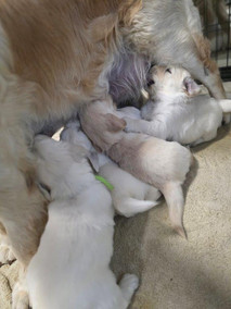 Both Isla and Leia are doing fabulous and loving their time with these sweet bundles. 2 & 3 more weeks of nursing before they are completely weaned. At that point the mamas get visits and playtime without boobie barnacles hanging off of them. A full surgical body suit gets put on the mamas so they are able to play and relax with their kiddos but without the babes hanging off of them. They absoluetely love this time with them and you can see they take a breathe and fully relax into their last chunk of time with their pups.