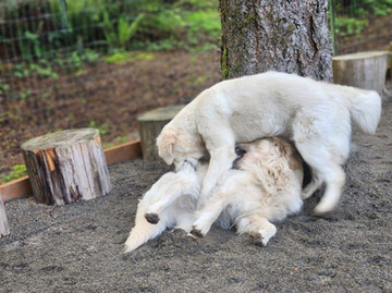 Leia gives me those puppy dogs eyes that she works hard core on me when leave. I spend lots of snuggle time in the evenings though that they soak up with everything that they have. If they aren't right in my lap they definitely are not far away. This is truly the best soul connecting breed. 'Golden' in every way.