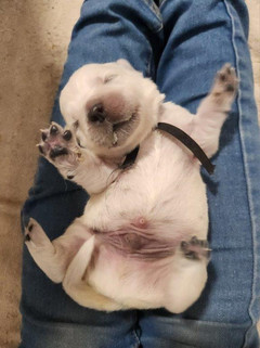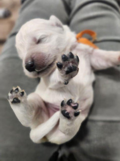 just when I think Leia is my more playful outgoing girl she is right at my feet looking up at me with her sweet calming eyes slowly bringing me right back to knowing full well that each of them are incredibly tuned in and perfectly balanced. Isla bolts off in a frenzy chasing nothing but pure the pure joy of just the love of running. As the pups celebrated their 1st week milestone on Thurs. I usually start getting them out in the stroller for rides around the property trail and quick car trips. This early exposure to movement and vibrations has proven to cut down on future motion sickness exponentially. This leaves them only with a love for adventure Ave the thrill of a good ride. These trips out were delayed due to rain, wind and chill but will for sure be put in place in this next week ahead.