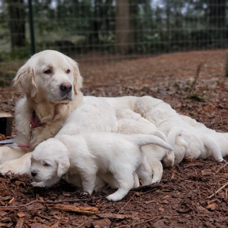 Potty training has been going exceptionally well with each and every pup doing their business where they should. This should be well on it's way by the time the pups leave here to have this transition go fairly well for all. It's been amazing to watch all the pups have a glint in their eyes and a hop to their step when you see the 'click' happen in them knowing they are doing the right thing. They only thing these dogs want to do is to please you. So when you see these wee tiny pups do this 'click' so early it concretes it in for me over and over that this is by far the best family dog out there.