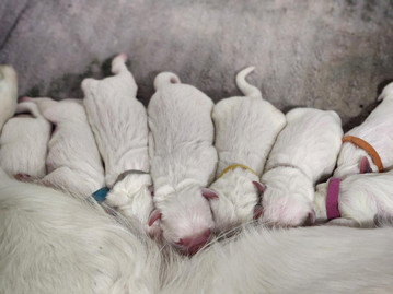 All pups arrived within a record breaking 3 hrs. flat which is incredibly fast for a birth. Meiko was a champ and did everything she was supposed to to a tee and continues to be the best mama anyone could ever ask for. I didn't have a doubt in the world that she would not only live up to my expectations but surpass them, and she is indeed doing so this morning.