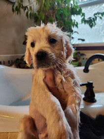 Swimming lessons took place this week or what is really only water exposure because who needs to teach a retriever to swim anyway. Yes, 6 wk. Old puppies can swim. Vixen and Prancer were my first volunteers and the look on their eyes was a mix between love and annoyance. Love for the water, the warmth and attention.. annoyance for the time away from their siblings and confusion why they needed this 'exposure' at all. Their heads rest in my hand as their fluffy butts float straight up and they simply think they are being treated to a spa day. I nudge them off and watch them calmly paddle around the tub like they've been swimming many times before. No fear, no anxiousness, just contentment and calmness as they do laps just doing their thing.