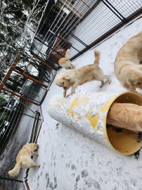 The weather that came at us this week was indeed challenging and called for some creativity. It continues to come down in sheets around here freezing everything in sight. Schedules get altered and routines get shifted so we were able to fulfill everyone's needs throughout the week. All the dogs are absolutely thrilled to have more snow though! They are having a blast!