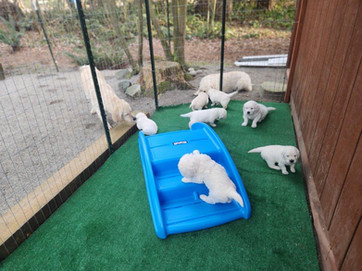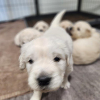 Pudgy tummies dominate our space, stubby thick legs, fat thick curly ears, bright wide eyes and little voices fill the air. These Sweet pups 'motors' have kicked in to a new higher gear this week. Determination flashes across their eyes as they whip their head sideways searching for a new direction. The will to pick up speed is apparent and the drive to do more and strive further is obvious.