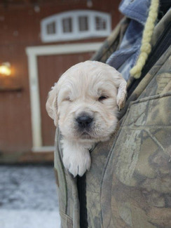 One of the pups always gets stuffed inside my jumper or under my arm when we go out into the yard. Not too sure they are loving this wet rain but it at least gives them some exposure to it which is great.
