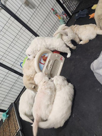 Sweet darling mama of these amazing pups glows with pride as these pups have crossed milestones faster than any other litter I've had, are drop dead gorgeous and smarter than probably their own good. Floof and fluff scamper under my feet challenging my balance and foot placement every inch that I move. Eager to lock eyes, searching for direction and waiting for a lap to show up. Every pup has blown me away and completely stolen my heart.